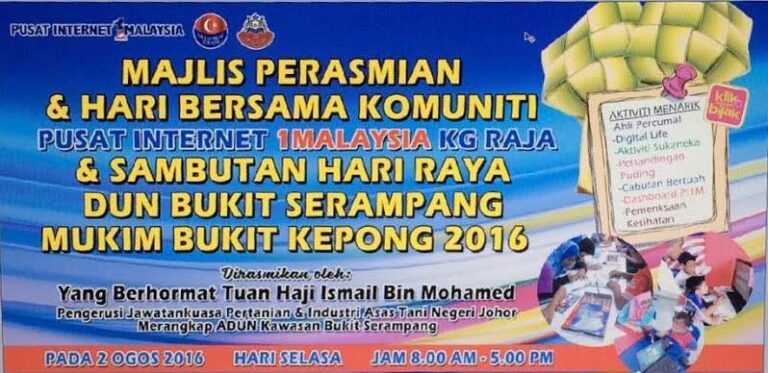AKTIVITI BULAN OGOS 2016 BIL TARIKH AKTIVITI TARGET 1 02/08/2016 HARI BERSAMA KOMUNITI KOMUNITI 2 11/08/2016 KELAS USAHAWAN IKS 3 12/08/2016 INTEL EASY STEP 1 SEKOLAH RENDAH 4 13/08/2016 KLIK DENGAN BIJAK SEKOLAH RENDAH 5 16/08/2016 KELAS KOMPUTER WANITA […]