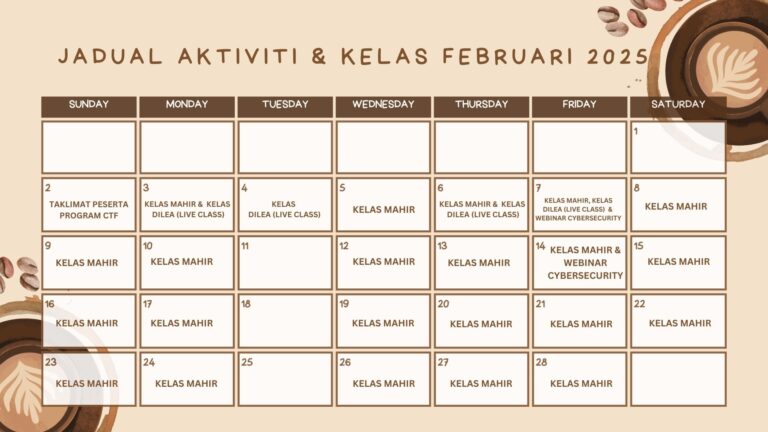 JADUAL AKTIVITI DAN KELAS FEBRUARI 2025